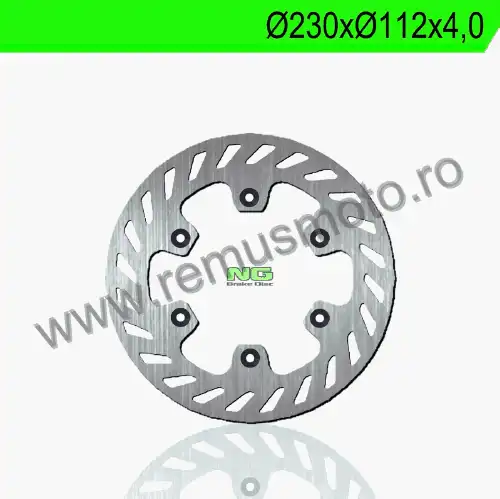 Disc de frana cu montare Stanga, diametrul exterior de 230mm, diametrul interior de 112mm, grosime de 4,0mm avand 6 gauri de prindere cu diametrul de 6,5mm.