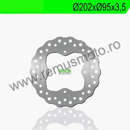 Disc de frana cu montare Stanga/Dreapta, diametrul exterior de 202mm, diametrul interior de 95mm, grosime de 3,5mm avand 4 gauri de prindere cu diametrul de 8,5mm.