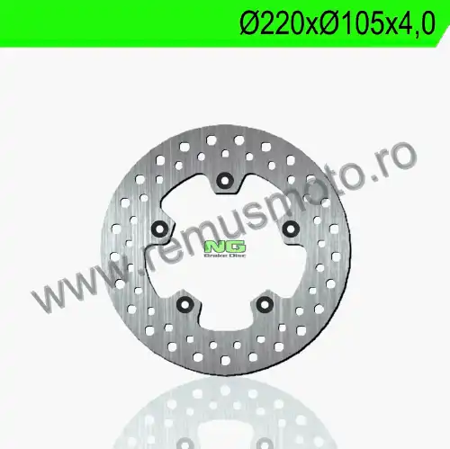 Disc de frana cu montare Stanga, diametrul exterior de 220mm, diametrul interior de 105mm, grosime de 4,0mm avand 5 gauri de prindere cu diametrul de 6,5mm.