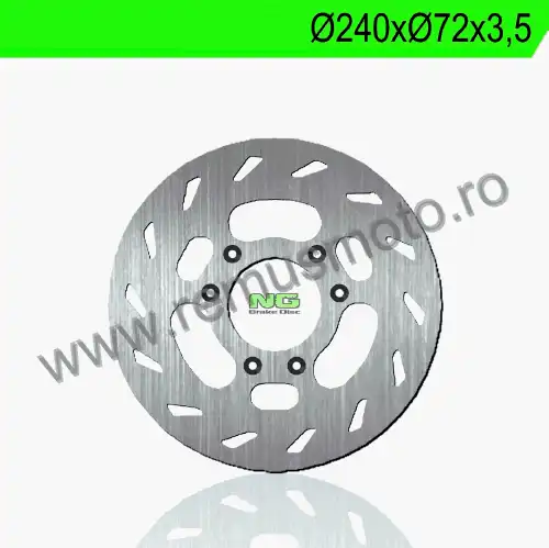 Disc de frana cu montare Stanga, diametrul exterior de 240mm, diametrul interior de 72mm, grosime de 3,5mm avand 6 gauri de prindere cu diametrul de 6,5mm.