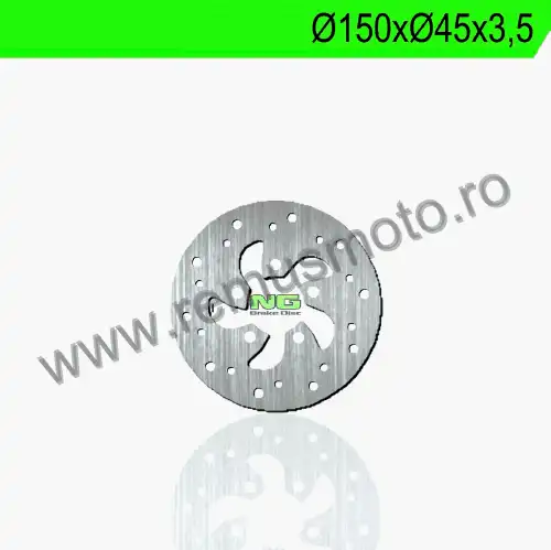 Disc de frana cu montare Stanga, diametrul exterior de 150mm, diametrul interior de 45mm, grosime de 3,5mm avand 5 gauri de prindere cu diametrul de 6,5mm.