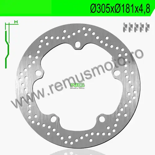 Disc de frana cu montare Stanga/Dreapta, diametrul exterior de 305mm, diametrul interior de 181mm, grosime de 4,8mm avand 5 gauri de prindere cu diametrul de 14,0mm.