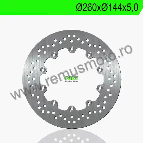 Disc de frana cu montare Stanga, diametrul exterior de 260mm, diametrul interior de 144mm, grosime de 5,0mm avand 10 gauri de prindere cu diametrul de 5,5mm.