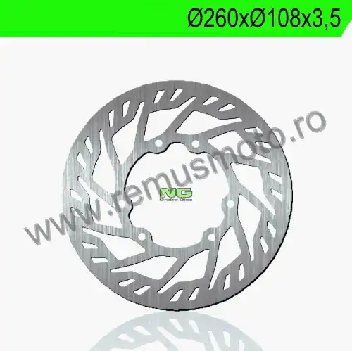 Disc de frana cu montare Stanga, diametrul exterior de 260mm, diametrul interior de 108mm, grosime de 3,5mm avand 6 gauri de prindere cu diametrul de 6,5mm.