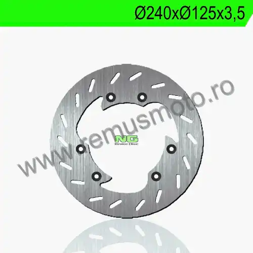 Disc de frana cu montare Stanga/Dreapta, diametrul exterior de 240mm, diametrul interior de 125mm, grosime de 3,5mm avand 6 gauri de prindere cu diametrul de 7,5mm.