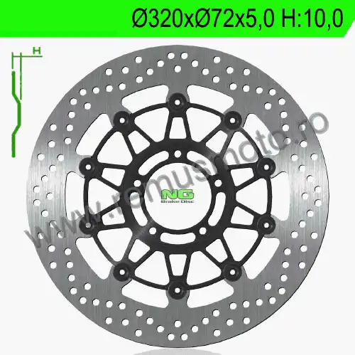 Disc de frana cu montare Stanga/Dreapta, diametrul exterior de 320mm, diametrul interior de 72mm, grosime de 5,0mm avand 5 gauri de prindere cu diametrul de 8,5mm.