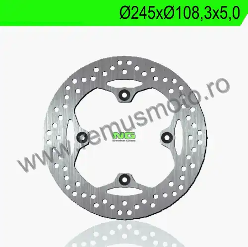 Disc de frana cu montare Stanga, diametrul exterior de 245mm, diametrul interior de 108,3mm, grosime de 5,0mm avand 4 gauri de prindere cu diametrul de 8,5mm.
