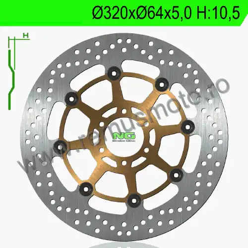 Disc de frana cu montare Dreapta, diametrul exterior de 320mm, diametrul interior de 64mm, grosime de 5,0mm avand 6 gauri de prindere cu diametrul de 8,5mm.