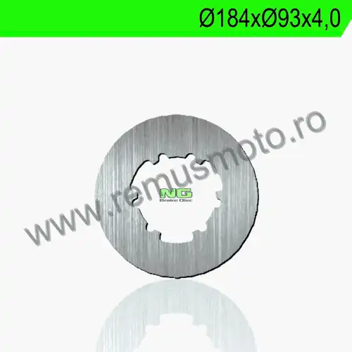 Disc de frana cu montare Stanga, diametrul exterior de 184mm, diametrul interior de 93mm, grosime de 4,0mm avand 6 gauri de prindere cu diametrul de 14,0mm.