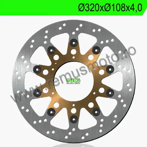 Disc de frana cu montare Stanga, diametrul exterior de 320mm, diametrul interior de 108mm, grosime de 4,0mm avand 6 gauri de prindere cu diametrul de 6,5mm.