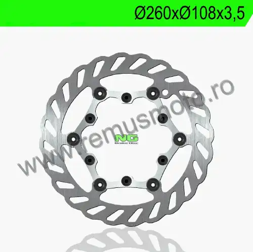 Disc de frana cu montare Stanga, diametrul exterior de 260mm, diametrul interior de 108mm, grosime de 3,5mm avand 6 gauri de prindere cu diametrul de 6,5mm.