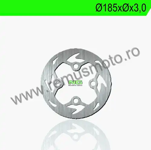 Disc de frana cu montare Stanga, diametrul exterior de 185mm, grosime de 3,0mm avand 4 gauri de prindere cu diametrul de 15,5mm.