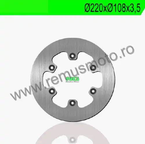 Disc de frana cu montare Dreapta, diametrul exterior de 220mm, diametrul interior de 108mm, grosime de 3,5mm avand 6 gauri de prindere cu diametrul de 6,5mm.