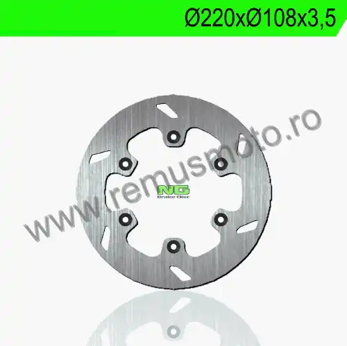 Disc de frana cu montare Dreapta, diametrul exterior de 220mm, diametrul interior de 108mm, grosime de 3,5mm avand 6 gauri de prindere cu diametrul de 6,5mm.
