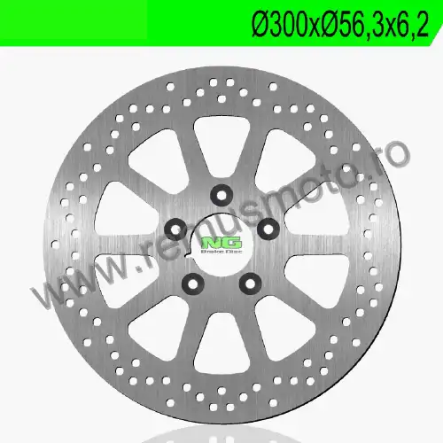Disc de frana cu montare Dreapta, diametrul exterior de 300mm, diametrul interior de 56,3mm, grosime de 6,2mm avand 5 gauri de prindere cu diametrul de 10,5mm.