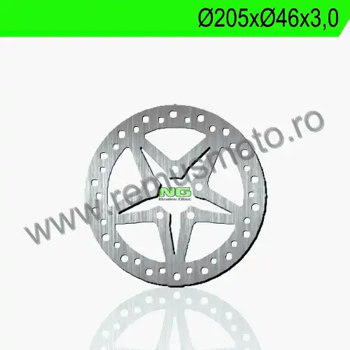 Disc de frana cu montare Stanga, diametrul exterior de 205mm, diametrul interior de 46mm, grosime de 3,0mm avand 5 gauri de prindere cu diametrul de 6,5mm.