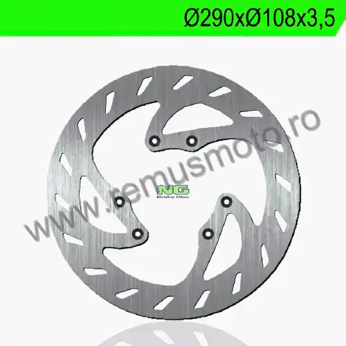 Disc de frana cu montare Stanga, diametrul exterior de 290mm, diametrul interior de 108mm, grosime de 3,5mm avand 6 gauri de prindere cu diametrul de 6,5mm.
