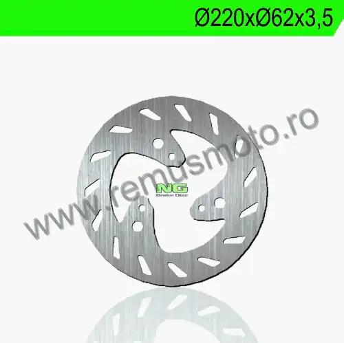 Disc de frana cu montare Dreapta, diametrul exterior de 220mm, diametrul interior de 62mm, grosime de 3,5mm avand 3 gauri de prindere cu diametrul de 10,5mm.