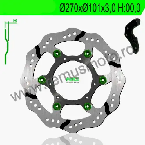 Disc de frana cu montare Stanga, diametrul exterior de 270mm, diametrul interior de 101mm, grosime de 3,0mm avand 6 gauri de prindere cu diametrul de 6,5mm.