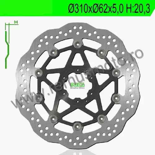 Disc de frana cu montare Stanga/Dreapta, diametrul exterior de 310mm, diametrul interior de 62mm, grosime de 5,0mm avand 6 gauri de prindere cu diametrul de 6,5mm.