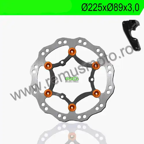 Disc de frana cu montare Stanga, diametrul exterior de 225mm, diametrul interior de 89mm, grosime de 3,0mm avand 3 gauri de prindere cu diametrul de 6,5mm.