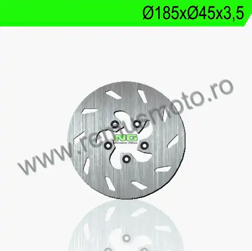 Disc de frana cu montare Stanga, diametrul exterior de 185mm, diametrul interior de 45mm, grosime de 3,5mm avand 5 gauri de prindere cu diametrul de 6,5mm.
