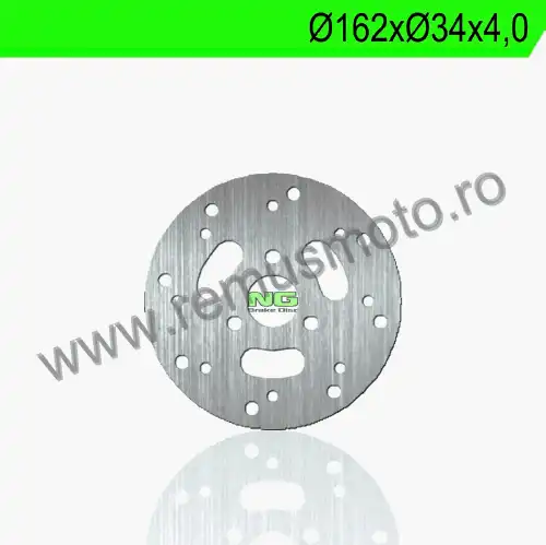 Disc de frana cu montare Stanga, diametrul exterior de 162mm, diametrul interior de 34mm, grosime de 4,0mm avand 3 gauri de prindere cu diametrul de 10,5mm.