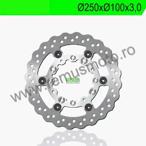 Disc de frana cu montare Stanga, diametrul exterior de 250mm, diametrul interior de 100mm, grosime de 3,0mm avand 4 gauri de prindere.