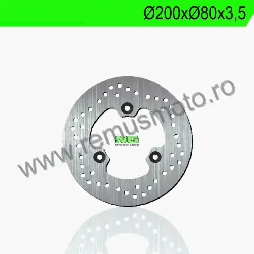 Disc de frana cu montare Stanga/Dreapta, diametrul exterior de 200mm, diametrul interior de 80mm, grosime de 3,5mm avand 3 gauri de prindere cu diametrul de 10,5mm.