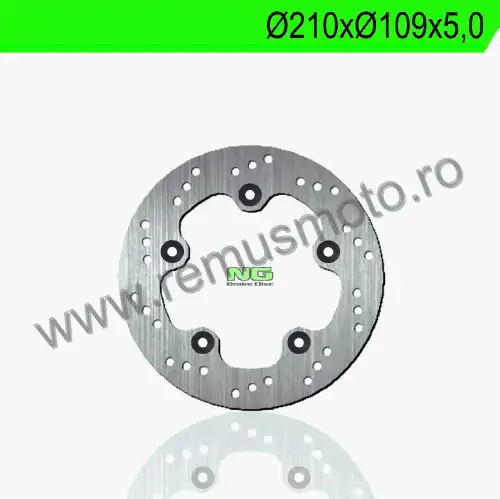 Disc de frana cu montare Stanga, diametrul exterior de 210mm, diametrul interior de 109mm, grosime de 5,0mm avand 5 gauri de prindere cu diametrul de 10,5mm.