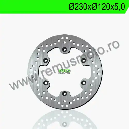 Disc de frana cu montare Dreapta, diametrul exterior de 230mm, diametrul interior de 120mm, grosime de 5,0mm avand 6 gauri de prindere cu diametrul de 10,5mm.
