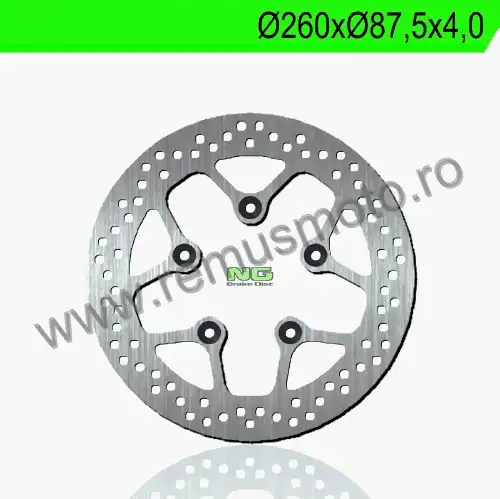 Disc de frana cu montare Stanga, diametrul exterior de 260mm, diametrul interior de 87,5mm, grosime de 4,0mm avand 5 gauri de prindere cu diametrul de 10,5mm.