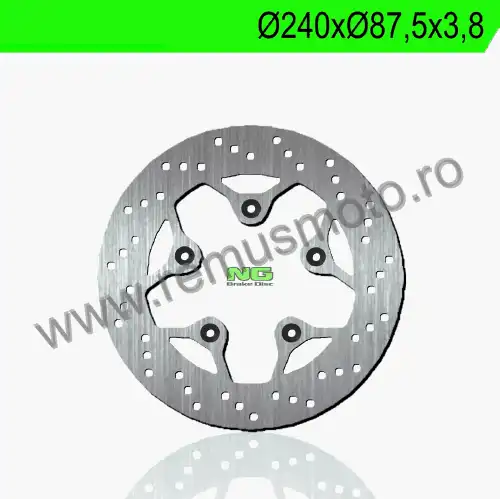 Disc de frana cu montare Dreapta, diametrul exterior de 240mm, diametrul interior de 87,5mm, grosime de 3,8mm avand 5 gauri de prindere cu diametrul de 10,5mm.