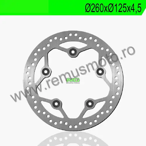 Disc de frana cu montare Dreapta, diametrul exterior de 260mm, diametrul interior de 125mm, grosime de 4,5mm avand 5 gauri de prindere cu diametrul de 8,5mm.