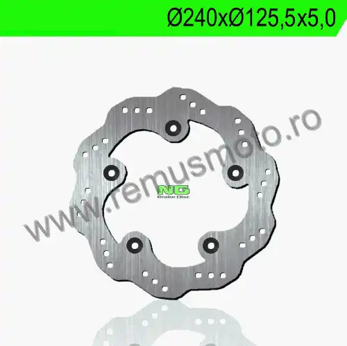 Disc de frana cu montare Dreapta, diametrul exterior de 240mm, diametrul interior de 125,5mm, grosime de 5,0mm avand 5 gauri de prindere cu diametrul de 10,5mm.