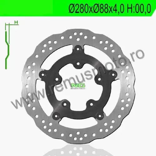 Disc de frana cu montare Stanga/Dreapta, diametrul exterior de 280mm, diametrul interior de 88mm, grosime de 4,0mm avand 5 gauri de prindere cu diametrul de 10,5mm.