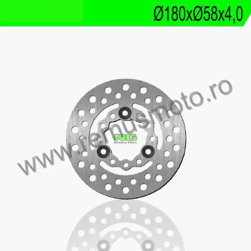 Disc de frana cu diametrul exterior de 180mm, diametrul interior de 58mm, grosime de 4,0mm avand 3 gauri de prindere.
