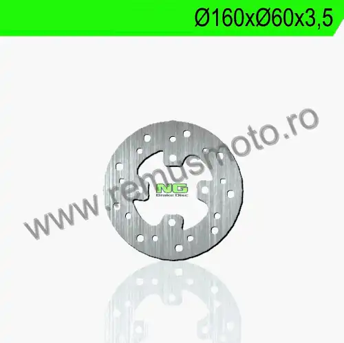Disc de frana cu montare Stanga, diametrul exterior de 160mm, diametrul interior de 60mm, grosime de 3,5mm avand 4 gauri de prindere cu diametrul de 6,5mm.