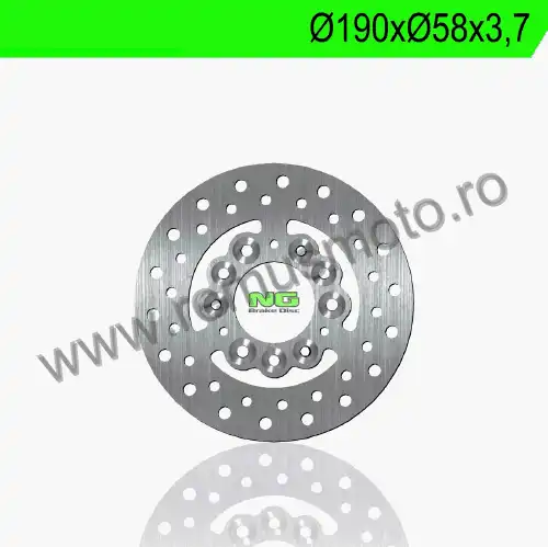 Disc de frana cu montare Stanga, diametrul exterior de 190mm, diametrul interior de 58mm, grosime de 3,7mm avand 3 gauri de prindere.