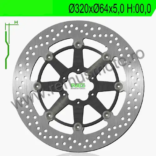 Disc de frana cu montare Stanga/Dreapta, diametrul exterior de 320mm, diametrul interior de 64mm, grosime de 5,0mm avand 6 gauri de prindere cu diametrul de 8,5mm.