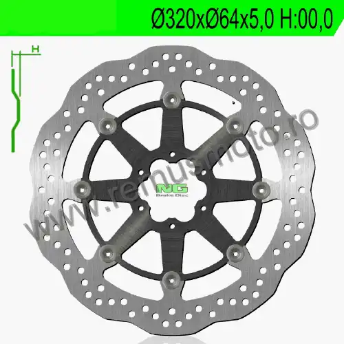 Disc de frana cu montare Stanga/Dreapta, diametrul exterior de 320mm, diametrul interior de 64mm, grosime de 5,0mm avand 6 gauri de prindere cu diametrul de 8,5mm.