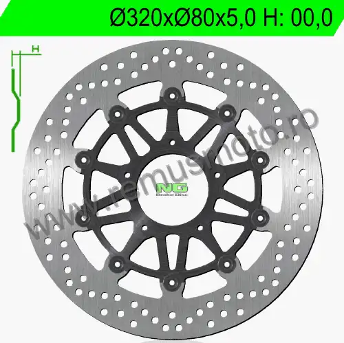 Disc de frana cu montare Stanga/Dreapta, diametrul exterior de 320mm, diametrul interior de 80mm, grosime de 5,0mm avand 5 gauri de prindere cu diametrul de 8,5mm.