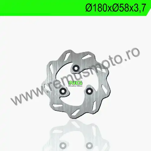 Disc de frana cu montare Stanga, diametrul exterior de 180mm, diametrul interior de 58mm, grosime de 3,7mm avand 3 gauri de prindere cu diametrul de 9,0mm.