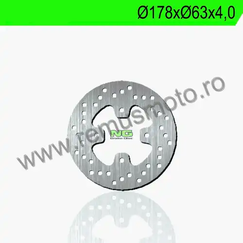 Disc de frana cu montare Stanga/Dreapta, diametrul exterior de 177,8mm, diametrul interior de 63,5mm, grosime de 4,0mm avand 4 gauri de prindere cu diametrul de 8,5mm.
