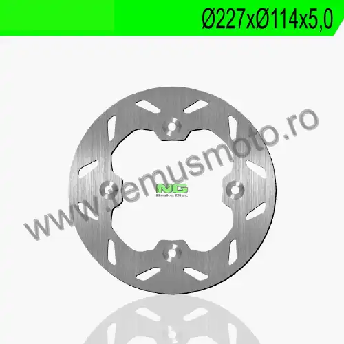 Disc de frana cu montare Stanga/Dreapta, diametrul exterior de 227mm, diametrul interior de 114mm, grosime de 5,0mm avand 4 gauri de prindere cu diametrul de 14,3mm.