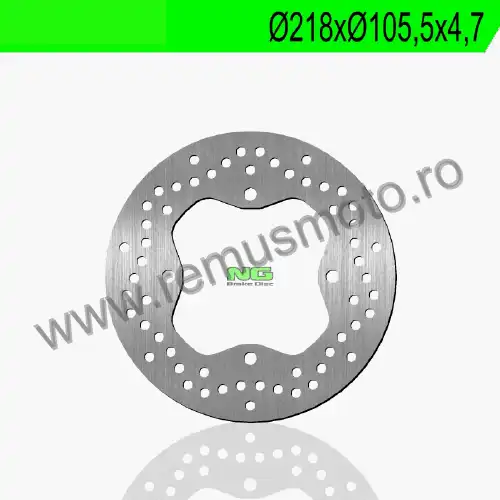 Disc de frana cu diametrul exterior de 218mm, diametrul interior de 105,5mm, grosime de 4,7mm avand 4 gauri de prindere cu diametrul de 10,5mm.