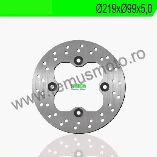 Disc de frana cu diametrul exterior de 219mm, diametrul interior de 99mm, grosime de 5,0mm avand 4 gauri de prindere cu diametrul de 14,3mm.
