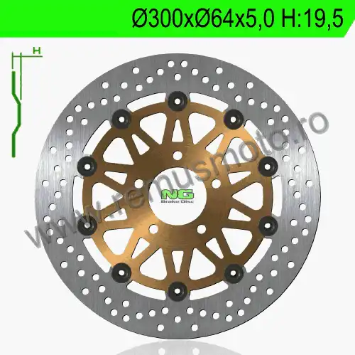Disc de frana cu montare Stanga, diametrul exterior de 300mm, diametrul interior de 64mm, grosime de 5,0mm avand 5 gauri de prindere cu diametrul de 10,5mm.
