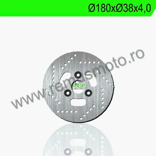 Disc de frana cu montare Stanga, diametrul exterior de 180mm, diametrul interior de 38mm, grosime de 4,0mm avand 3 gauri de prindere cu diametrul de 10,5mm.