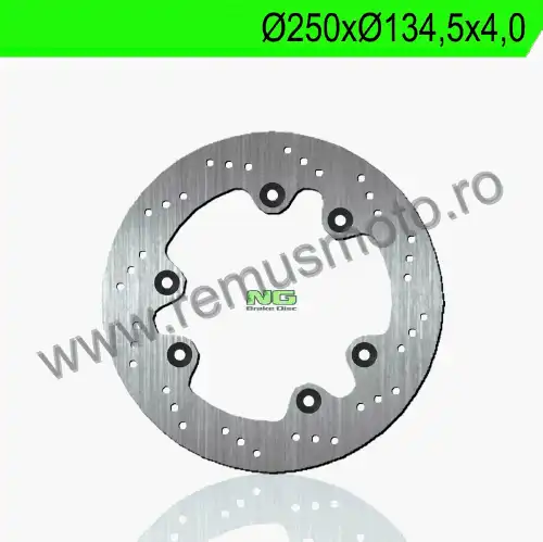 Disc de frana cu montare Dreapta, diametrul exterior de 250mm, diametrul interior de 134,5mm, grosime de 4,0mm avand 6 gauri de prindere cu diametrul de 10,5mm.